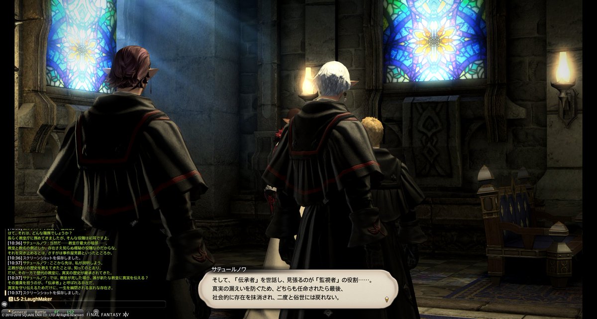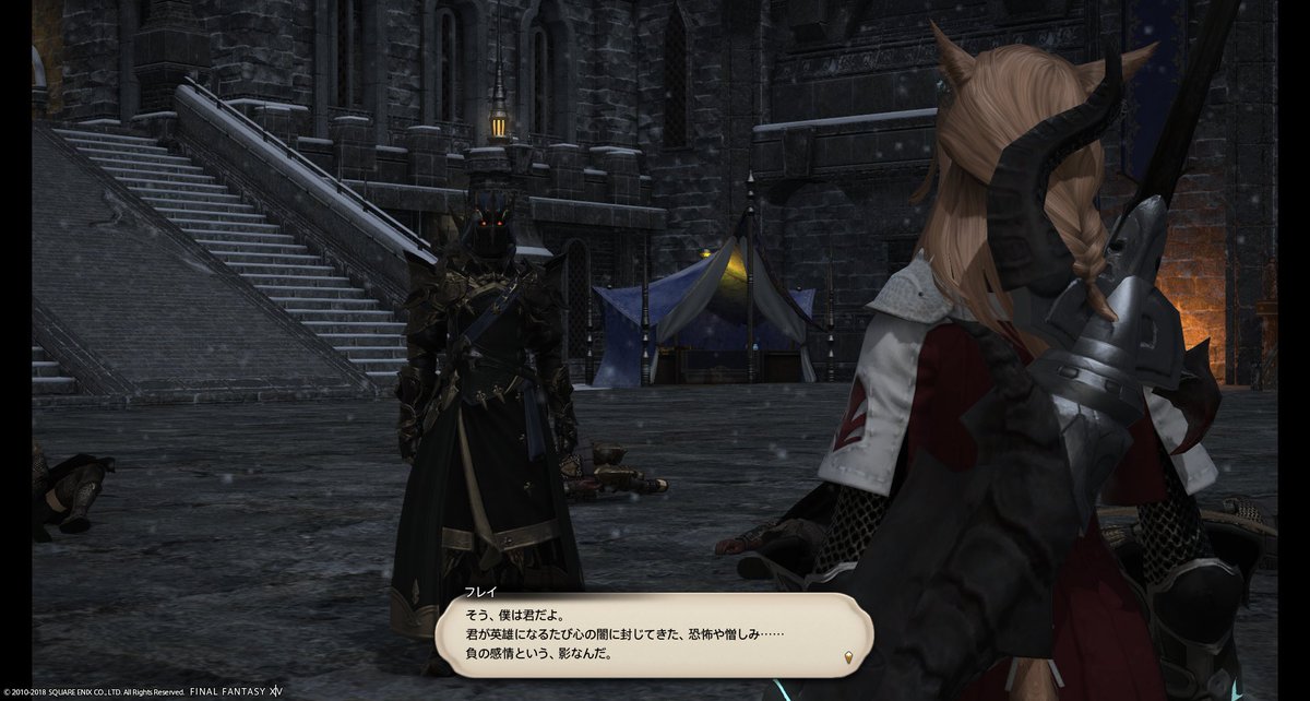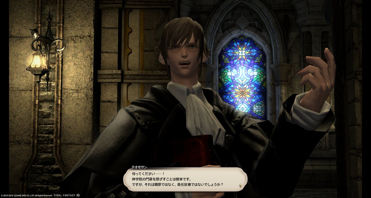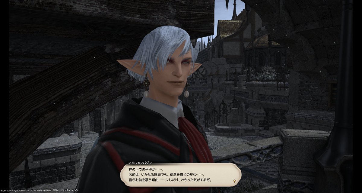 これまで1000年どうやって真実を伝承したのか、真実が暴かれた今これからのイシュガルドがどうなるのか、良くわかるクエだった。満足。3.1からのストーリーは貴族vs平民よりはイシュガルドvsドラゴン族がメインぽいから、内部抗争はサブクエになったのかな。学院の制服もらって嬉しかったけど、これ着るならエレゼンになりたいなとか思った。
