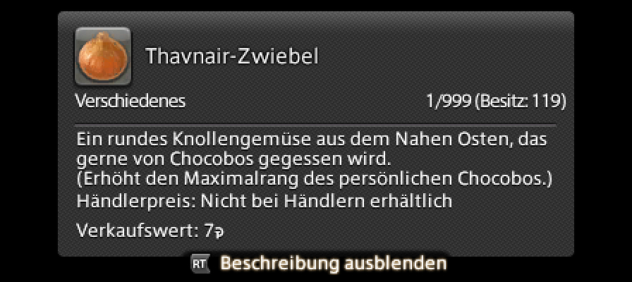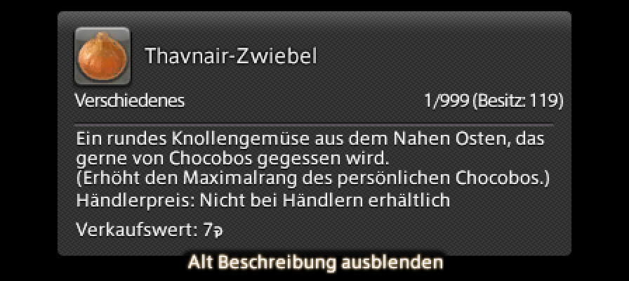 ※ Für jeden neuen Rang ist eine Thavnair-Zwiebel erforderlich.