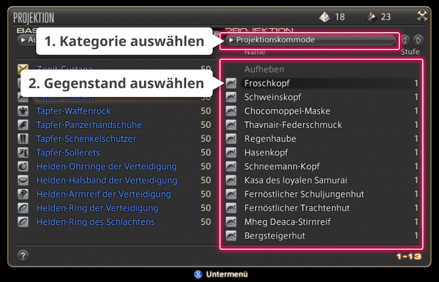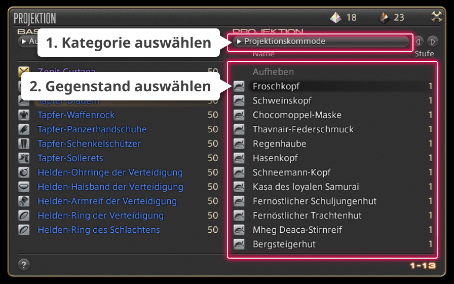 Um eine Projektion anzuwenden, ohne die Ausrüstung der Projektionskommode zu entnehmen, musst du dich zunächst auf ein Gästezimmer zurückziehen.