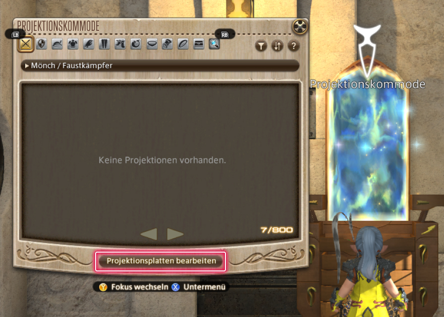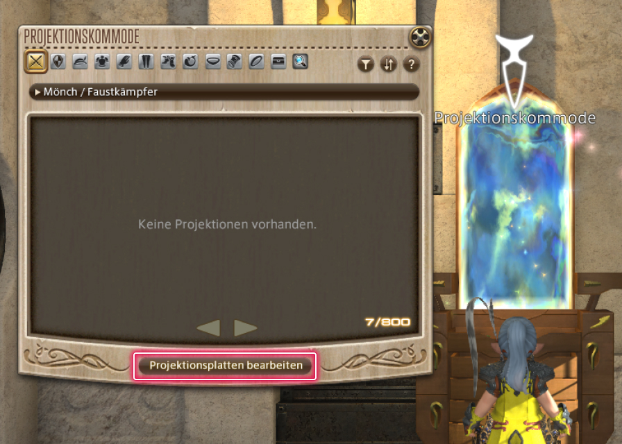 ※ Wenn du einen Gegenstand auswählst, wird er in der Vorschau der Projektionskommode angezeigt.