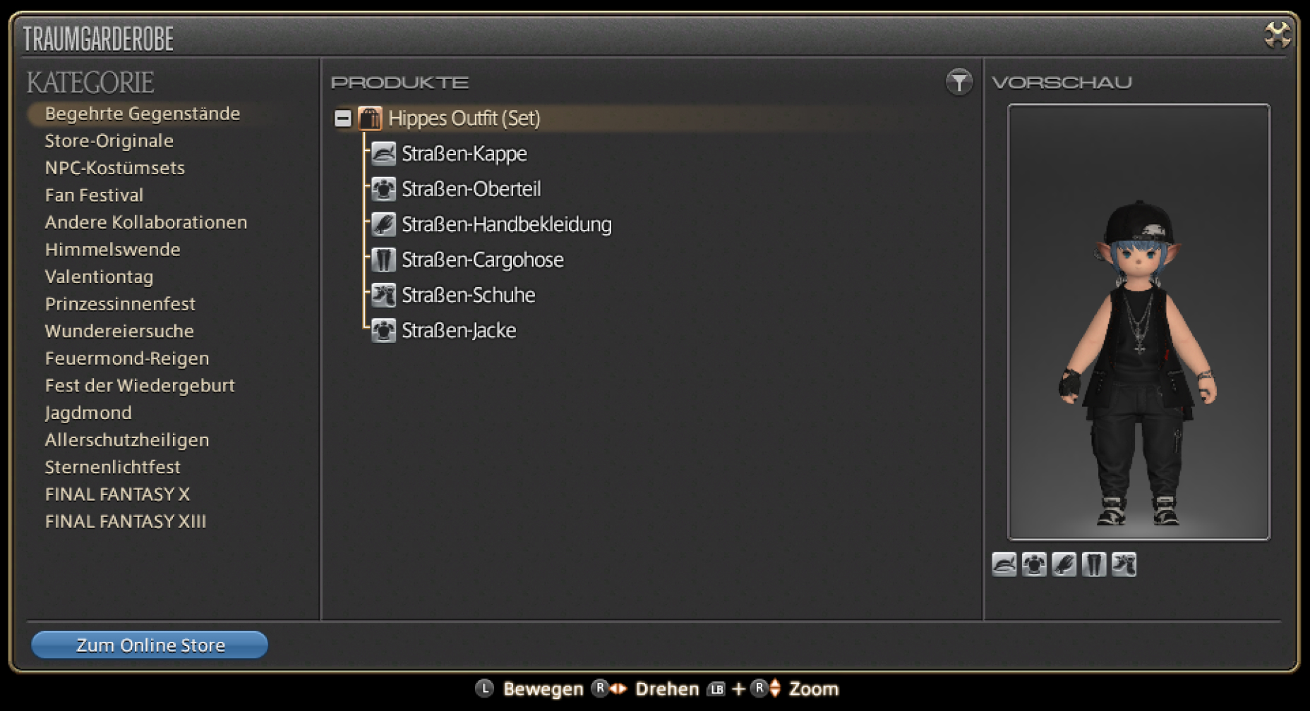 Die Traumgarderobe ist ein Spielelement, das es dir gestattet, Gegenstände aus dem FINAL FANTASY XIV Online Store direkt im Spiel anzuprobieren.