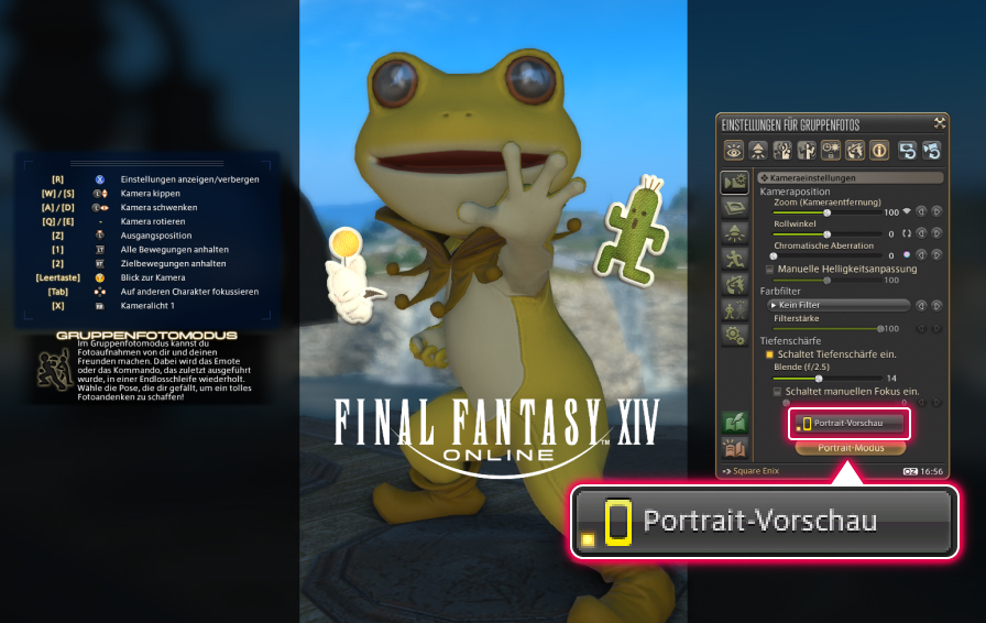 Alternativ kann der Gruppenfotomodus auch durch Eingabe von „/gruppenpose“ oder „/gpose“ gestartet werden.