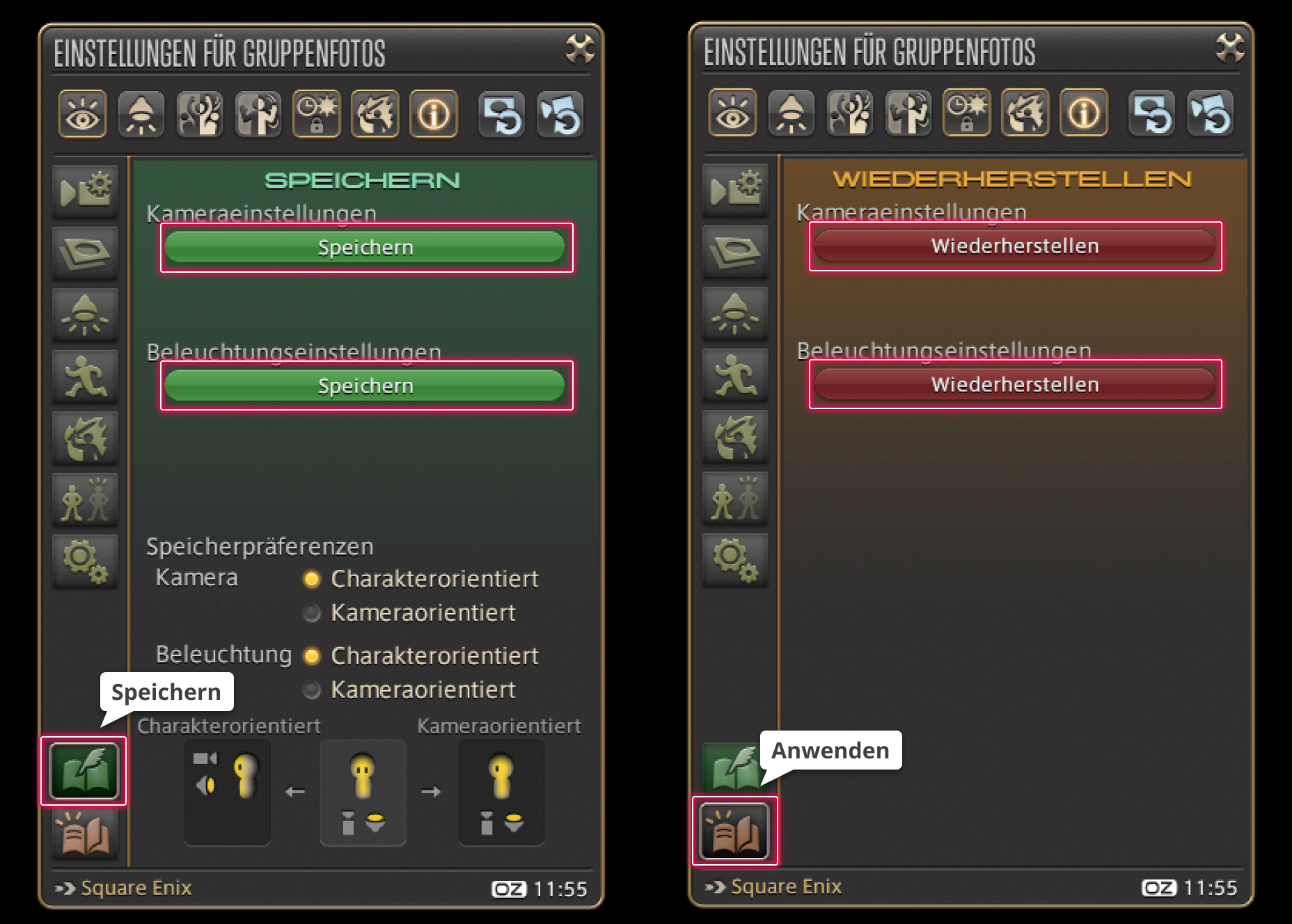 Das User Interface, oder kurz UI, ist die Benutzeroberfläche, die es erlaubt, ein Spiel oder ein Programm zu bedienen. Es besteht aus Menüs, Fenstern, Symbolen und Schaltflächen. Das UI von FFXIV ist so konzipiert, dass es sich leicht an die Wünsche der Spielerinnen und Spieler anpassen lässt.