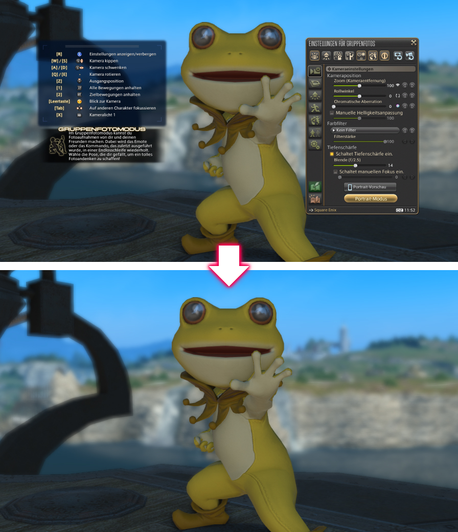 Du kannst den Gruppenfotomodus auch starten, indem du den Textbefehl /gruppenpose (/grouppose, /gpose) eingibst.